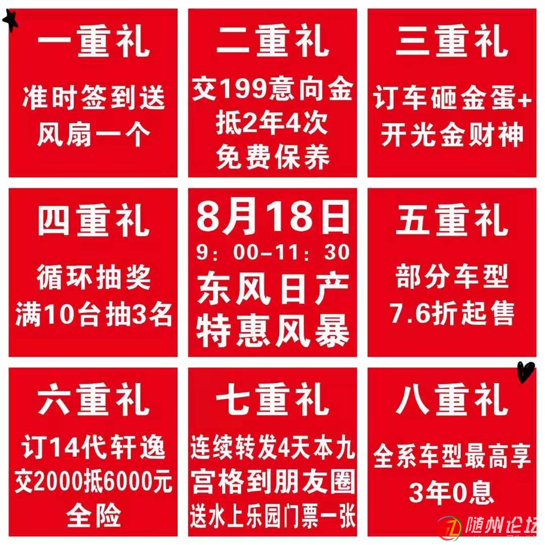 福利一 守時簽到禮:提前繳納199元誠意金,到店即獲小風扇一個 福利二 認籌禮:提前認籌199元誠意金抵2年4次免費保養(yǎng) 福利三 訂車禮:8月18日活動當天成功購車的客戶訂車即砸金蛋還送開光金財神 福利四 抽獎禮:成功 ...