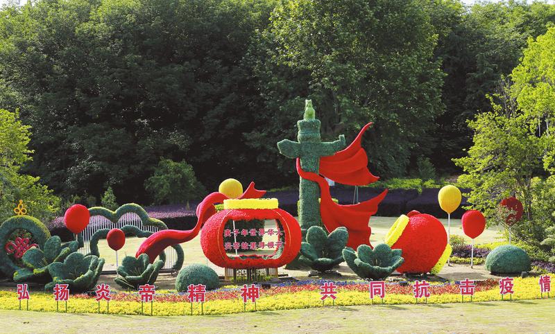 庚子年世界華人炎帝故里尋根節(jié)將于5月18日舉行,迎賓花卉注入抗擊疫情的新元素。圖為市政府北山坡的迎賓花卉景觀。(隨州日報全媒記者徐斌攝) ...